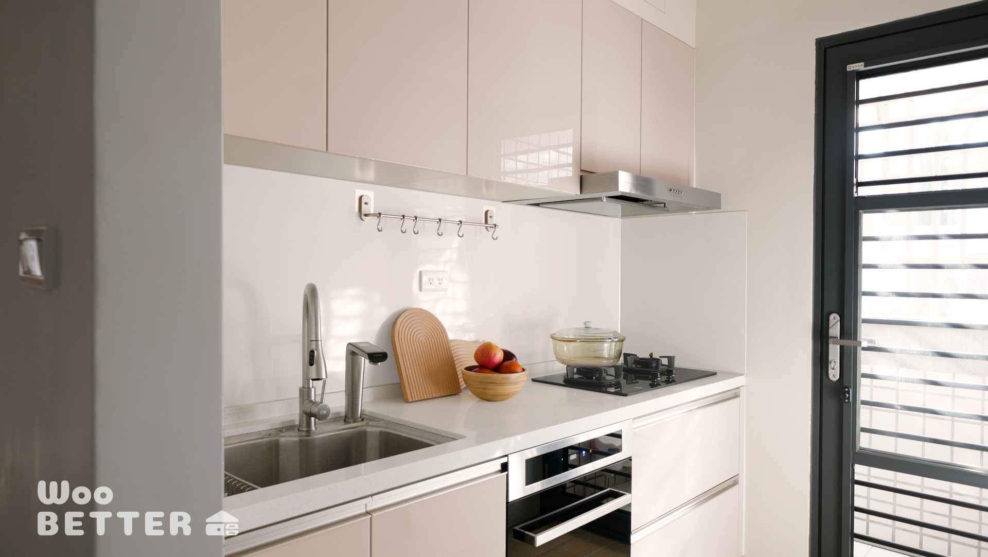 1.廚房封閉難清理的舊窗,並改貼琺瑯板,讓清潔更容易。